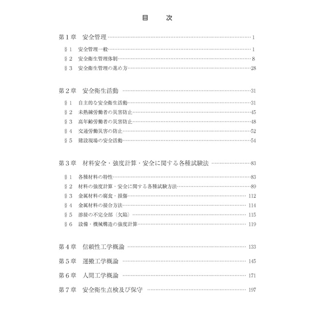 そこで、当会では長年の試みとして、この幅広い「産業安全一般」の科目で、過去に出題された問題を分野別に分析して、受験のために最低必要とされる内容をまとめた参考書ができないものかと検討を続けてきました。本書は、そのような観点から編集したものです。